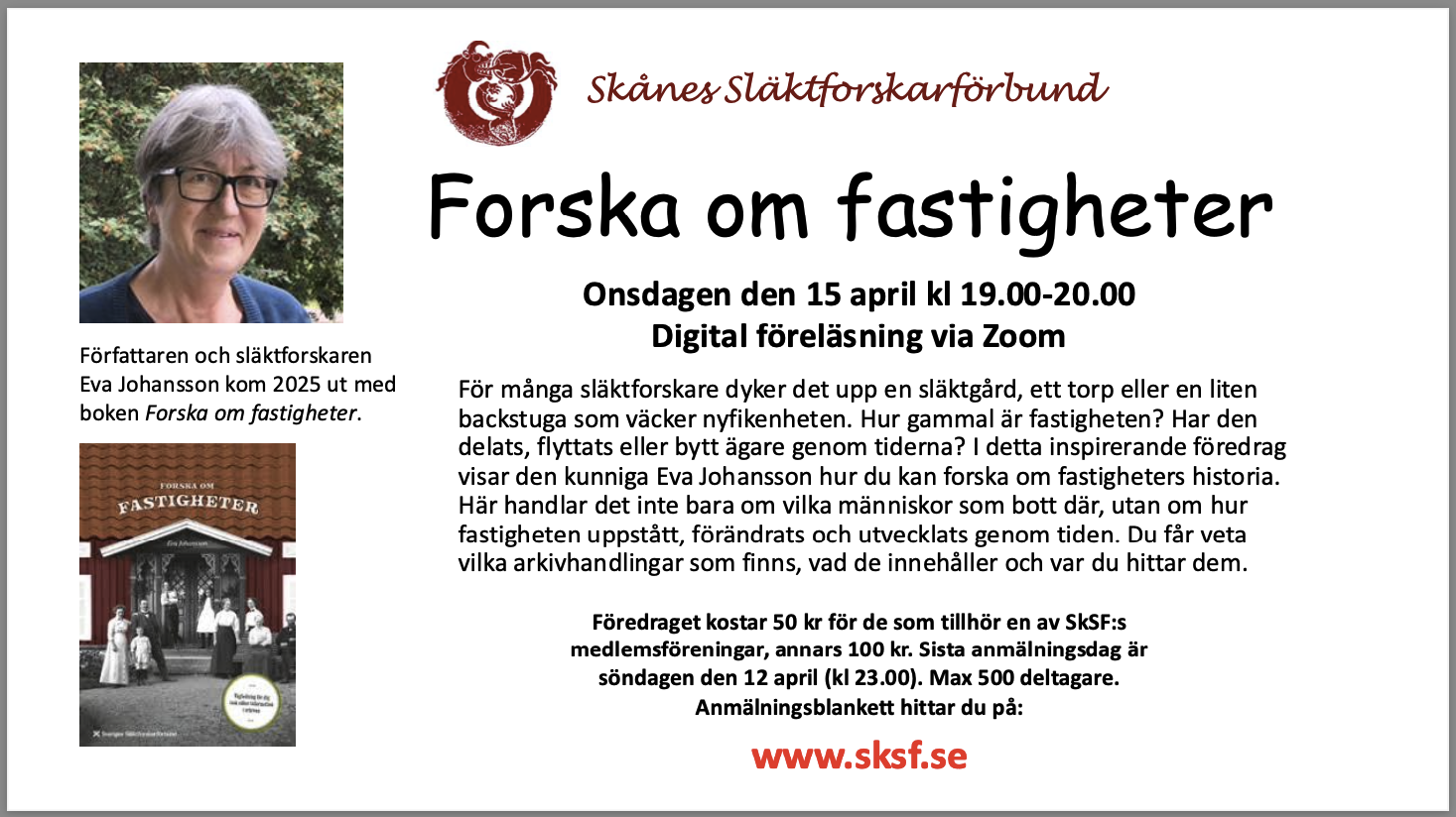 Alla är välkomna! Medlemmar anmäler sig genom att besvara inbjudan som kommer skickas ut via mejl. Är du inte medlem mejla landskronaforsk@gmail.com. Efteråt serveras fika för 40 kr. Ange om ni vill ha fika när ni anmäler ert deltagande. Senast söndagen den 19 april behöver vi veta hur många muffins vi ska beställa. Vill ni alltså endast lyssna på Tommy så får ni gärna anmäla er senare också.